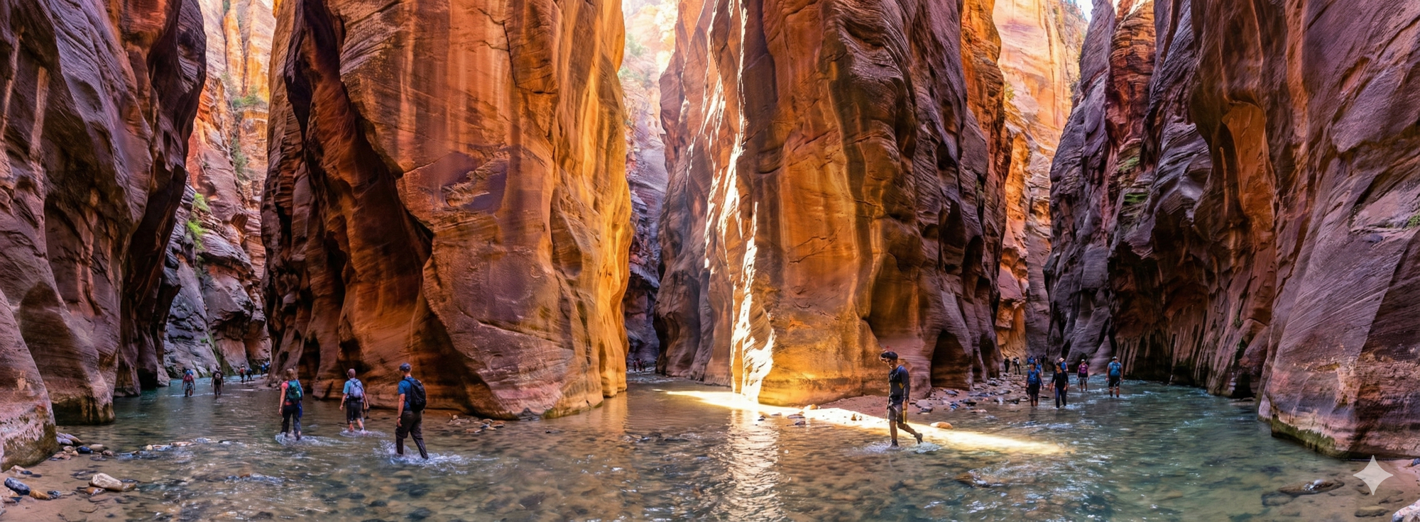 The Narrows is the quintessential slot canyon hike. You don't hike along the river; you hike in it. Walking upstream through the Virgin River, with walls towering a thousand feet above you and closing in to just twenty feet wide, is a surreal, immersive experience.