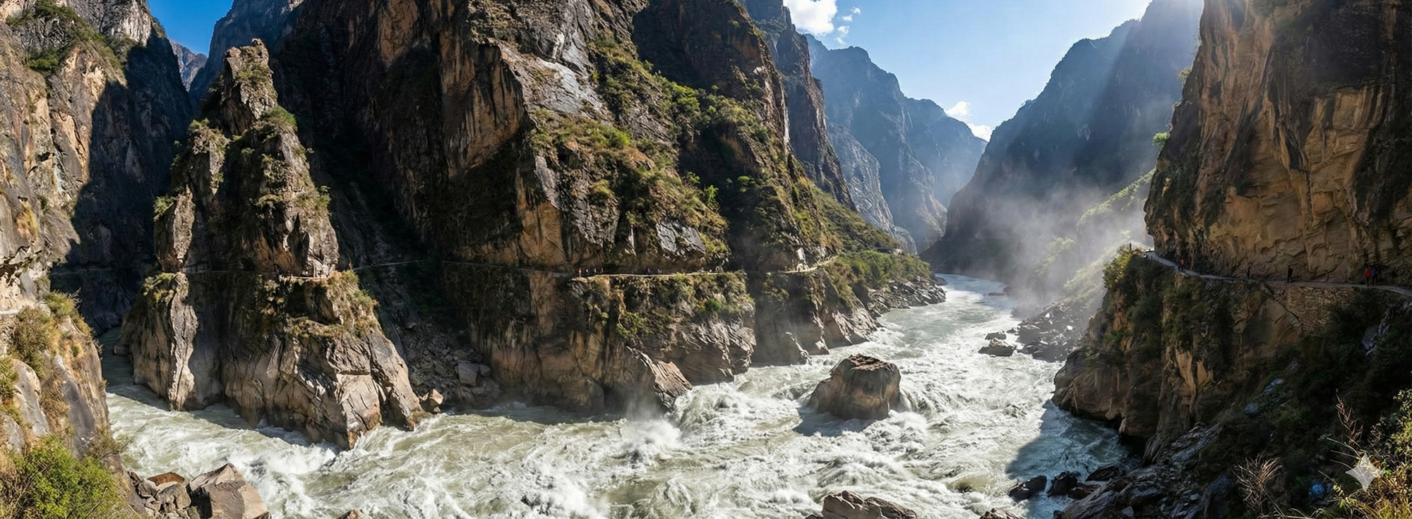 One of the deepest gorges on the planet, where the Yangtze River crashes violently between the Jade Dragon Snow Mountain and Haba Snow Mountain. The "High Trail" offers vertigo-inducing views into the churning water thousands of feet below. Legend says a tiger jumped the gorge to escape a hunter—you'll just be happy to walk it.