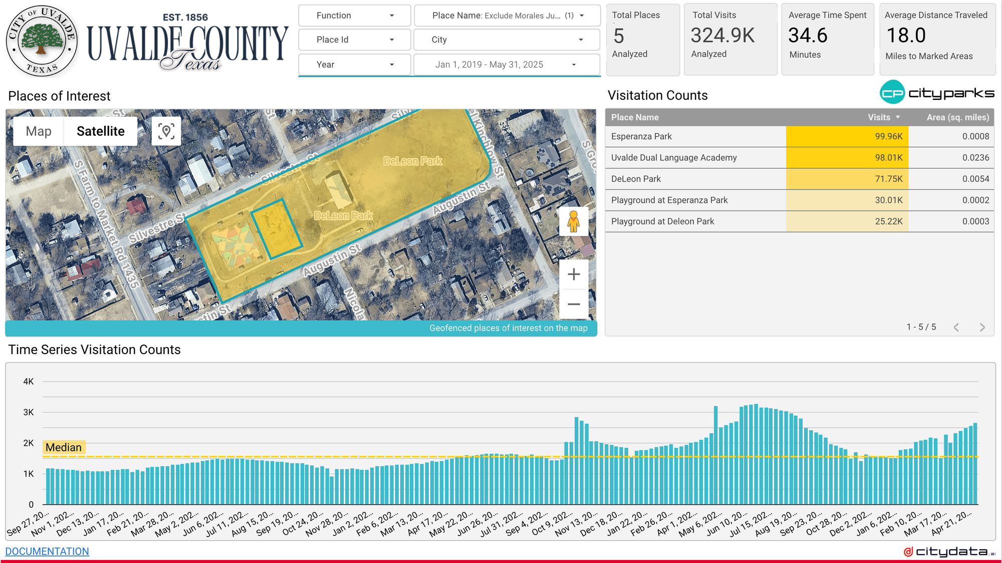 CityData.ai provides unparalleled insights into visitation and movement patterns for parks, trails, and open spaces across the United States through the CityParks.ai initiative. For the Uvalde project, we licensed our cutting-edge CityParks.ai data product, offering KABOOM! a robust methodology to understand park engagement levels and quantify the success of their vital work.