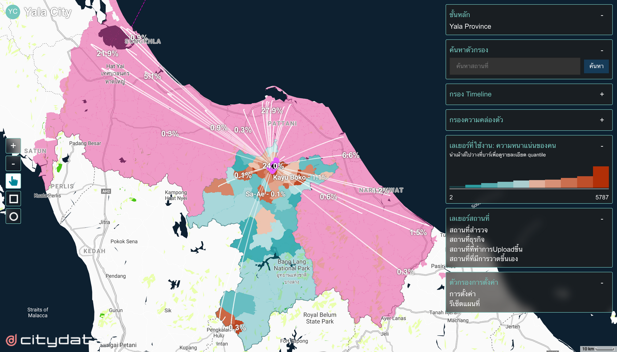 Mayor Pongsak Yingchoncharoen of Yala Province commented that "CITYDATA provides an interesting technology combined with the power of artificial intelligence for the greater good. In today's society, all decisions must be based on information and knowledge. Crowdsourced mobility data reveals the movement patterns of people. This helps us to enforce time restrictions to control the spread of COVID-19 and reduce the infection rate. Such cloud-based data services will be used by Yala Province for addressing the COVID-19 situation. The municipality also intends to continue to use CITYDATA's technology to analyze mobility data patterns for economic rehabilitation, public transportation, and urban development within Yala Province."