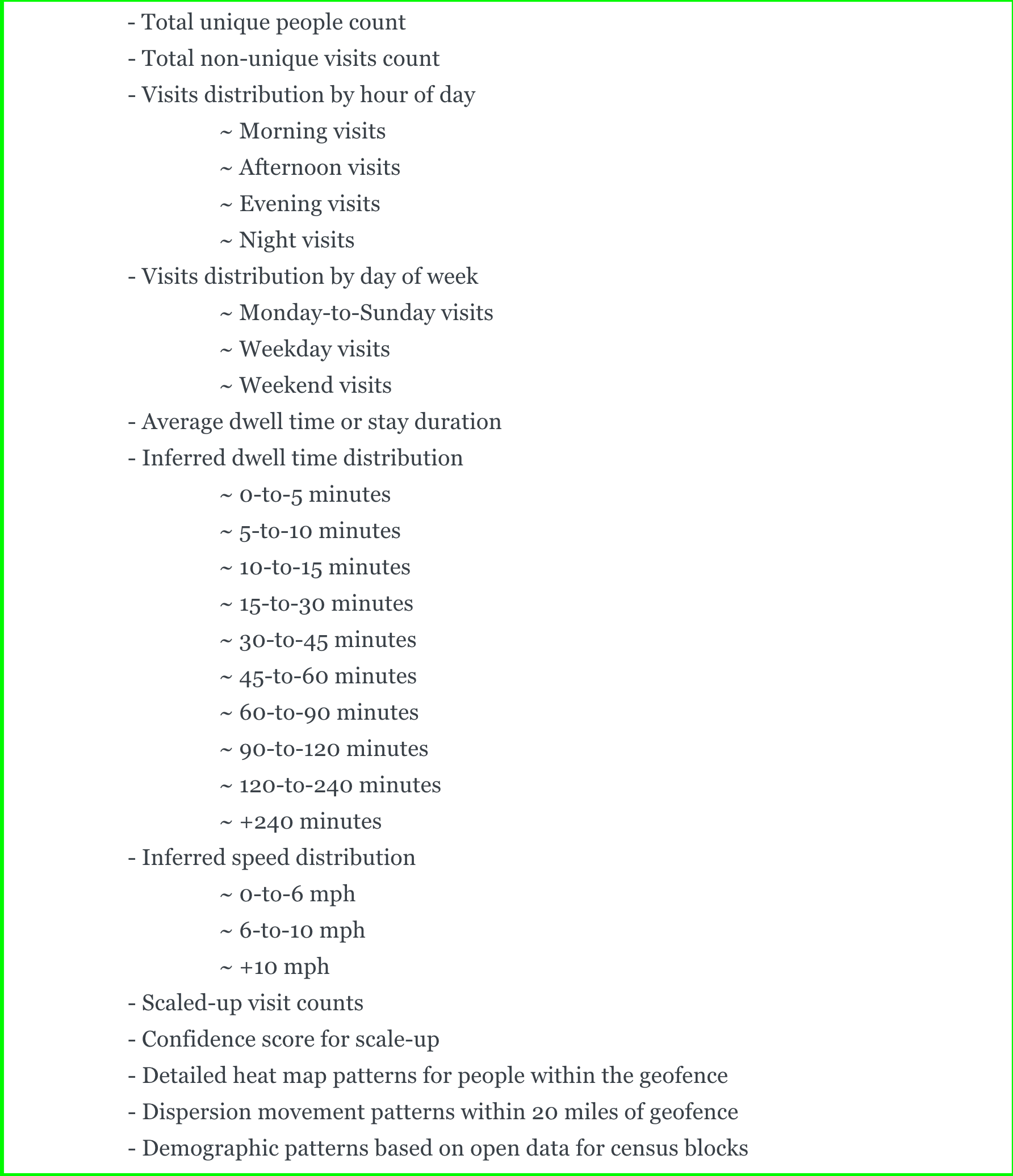 - (optional) Incorporate ground truth data if available, to improve the scale-up models for geofence visit inferences