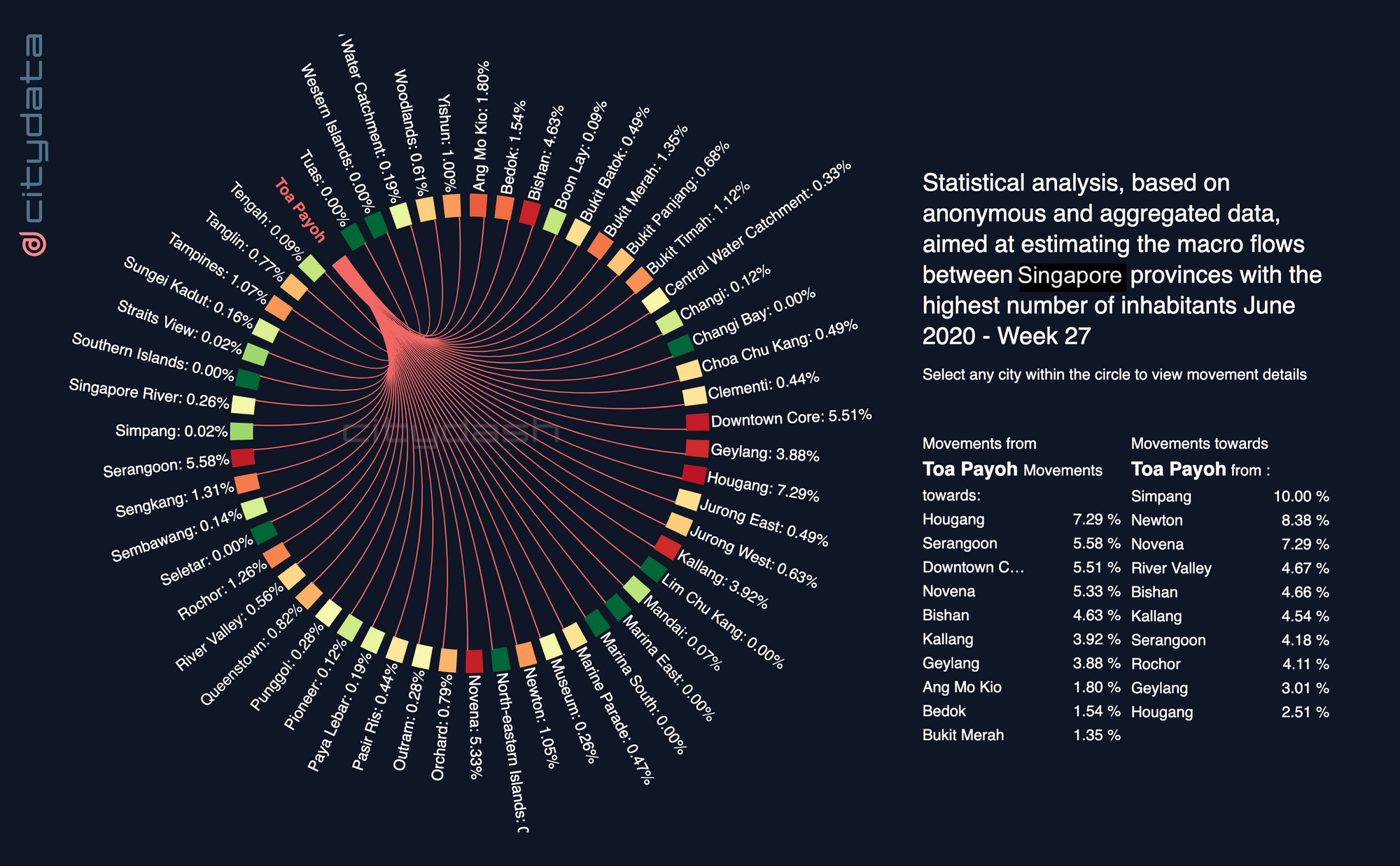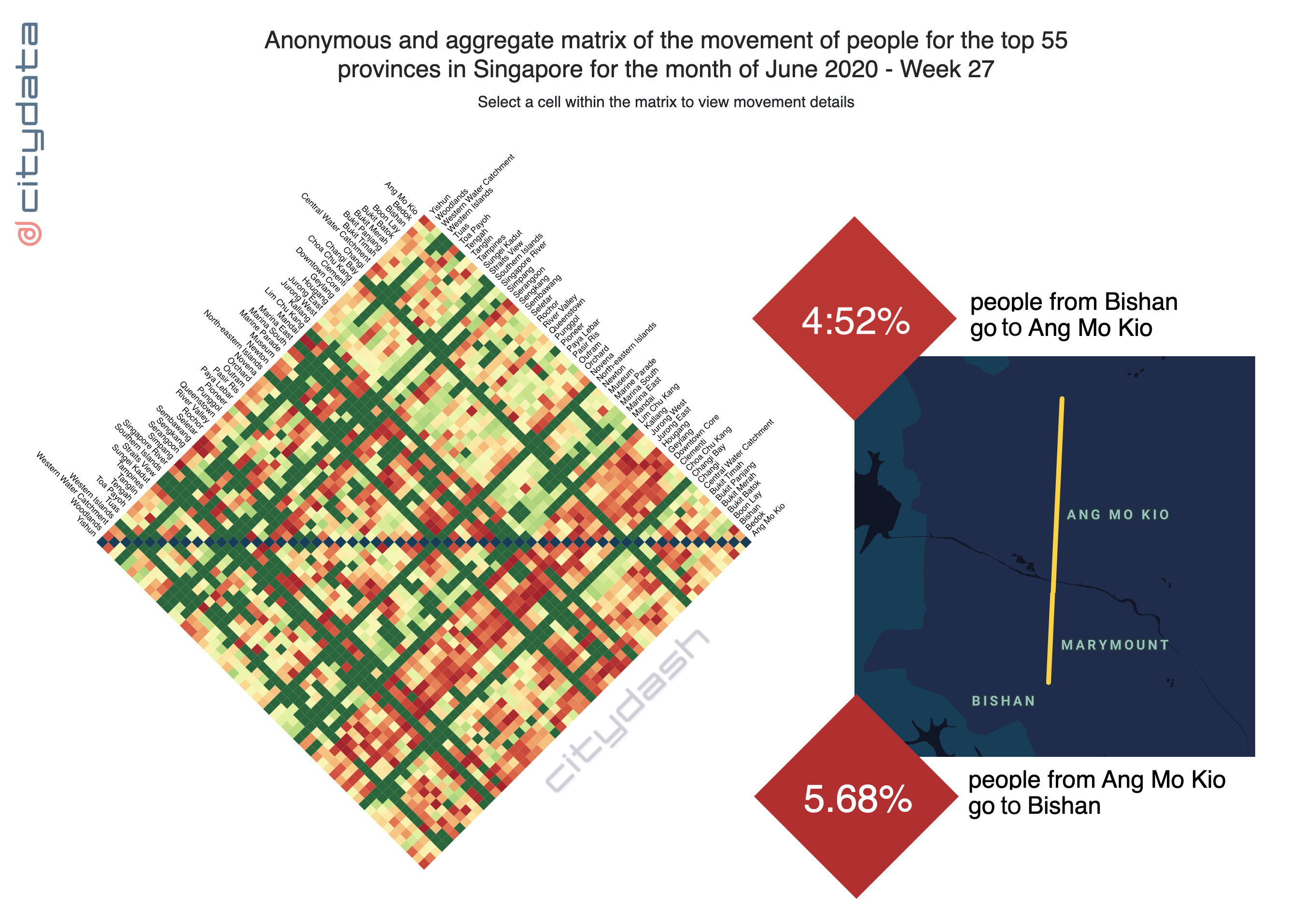 The dashboard collects fresh, accurate, anonymized, aggregated, high-resolution GPS crowdsourced data and measures people-movement across the across the 55 planning areas in Singapore in a privacy-compliant manner.
